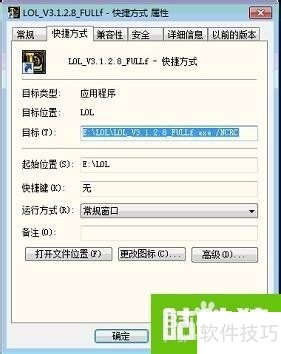 3、 接着,在桌面找到这个快捷方式后,我们在这个快捷方式里右键一下并选择点击打开“属性”;点击“属性”,然后打开来的窗口里找到目标栏,保持前面的东西不需要修改,只需在后面空格一下,加上“?/NCRC”即可,以小编电脑为例,小编电脑上的目标栏里是F:LOL_V3.1.3.4_FULL.exe,所以我只需要在F:LOL_V3.1.3.4_FULL.exe后面空格一下,然后加上?/NCRC;最后确定即可。