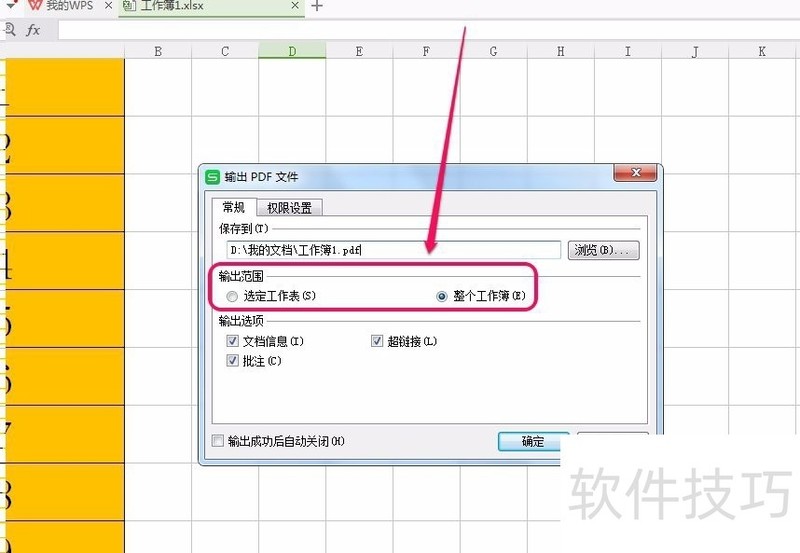5、 “输出范围”项中有“选定工作表”、“整个工作簿”,我们这里选择“整个工作簿”。