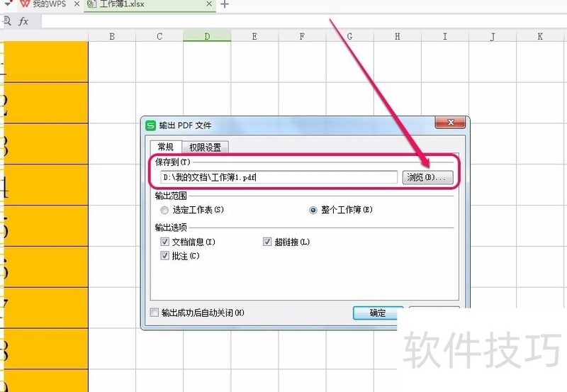 4、 用鼠标单击“浏览”按钮,选择一个保存PDF文档的位置。
