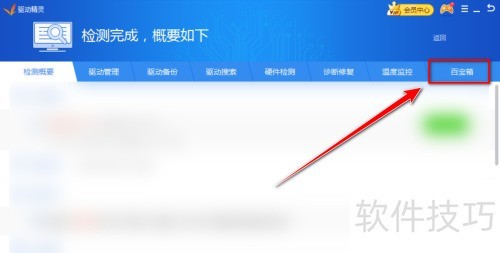 2、 在驱动精灵的窗口里,点击“百宝箱”。