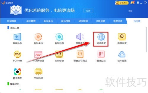 3、 在“百宝箱”页面里,点击“网络修复”。
