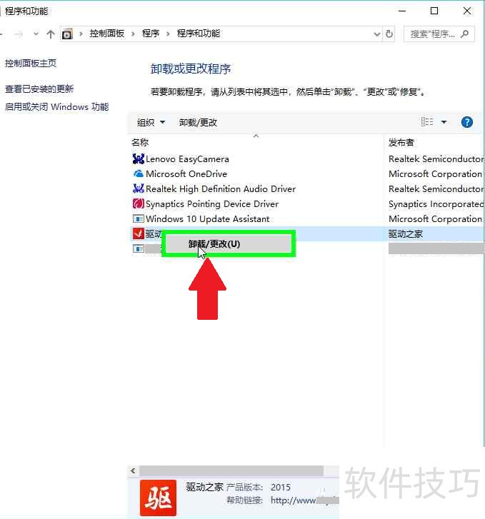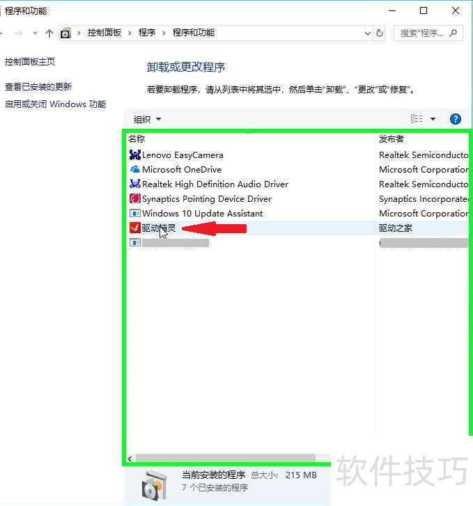 5、 用户在"驱动精灵 (编辑)"上右键单击(在"程序和功能"中)。