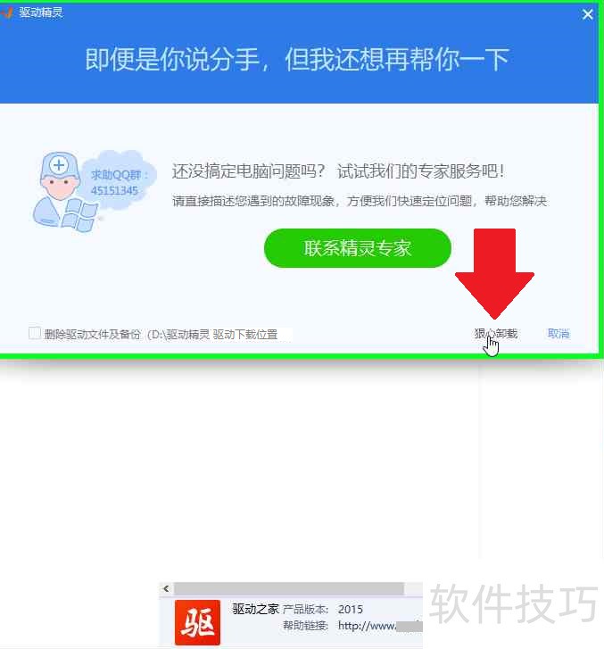 7、 用户在"驱动精灵卸载程序 (窗口)"上左键单击(在"驱动精灵卸载程序"中)。