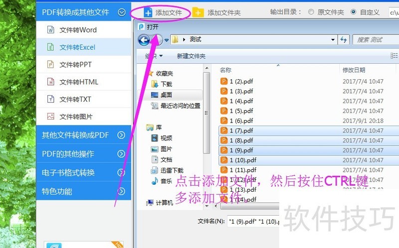 1、 我们需要使用这款软件在网页上搜索“PDF转换器”,然后就会出现官网,进去就可以下载、安装了。2完成之后,打开软件,点击左侧的“PDF转换成其他文件”选项,会出现下拉选项,我们点击“文件转EXCEL”选项。3点击“添加文件”按钮,将所要转换成EXCEL的PDF格式文件添加到操作页面上等待操作,按住CTRL键可以多选择文件。
