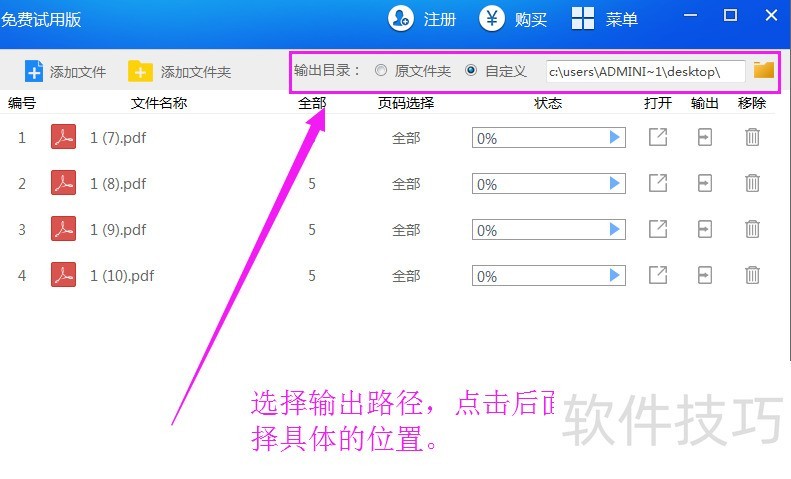 4、 在页面的右上角“输出目录”中,选择“自定义”或者“原文件夹”为输出文件设置保存的位置。