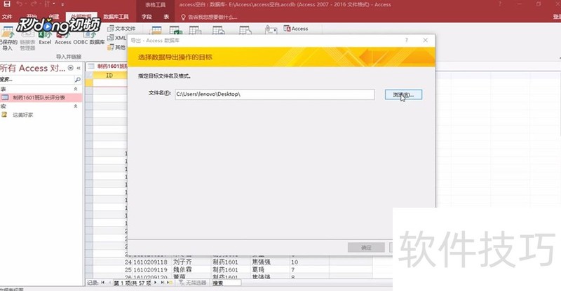 1、 首先在上面菜单栏中的表格工具中点击“Access”。