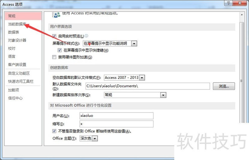 4、 进入到了 选项 界面中,点击左侧中 当前数据表 选项