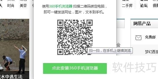 2、 此时会出现一个二维码,如果你的手机没有安装360安全浏览器,请点击下面的按钮安装哦