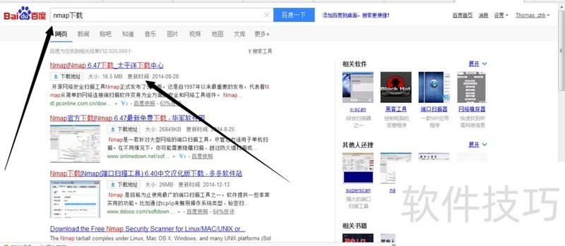 2、 首先通过网络搜索NMAP,找到免费版本的软件,并下载安装,并通过网络搜索一些基本的扫描端口教程,然后就可以对目标服务器进行扫描了,请记住扫描公司内部服务器可以的,如果通过nmap扫描Internet网的服务器地址,则是违法的,请慎用。