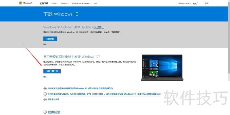 1、 在网络搜索win10,找到微软官方提供的装系统工具下载页,点击立刻下载工具。下载完成后双击打开
