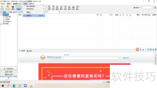 1、 ? ? ? 第一步:打开电脑中所安装的“比特彗星”,点击“工具”菜单下的“选项”命令(如图所示)。