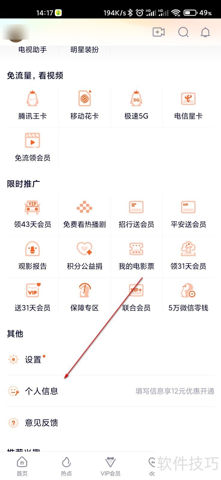 2、 点击右下角【个人中心】进入腾讯视频个人中心