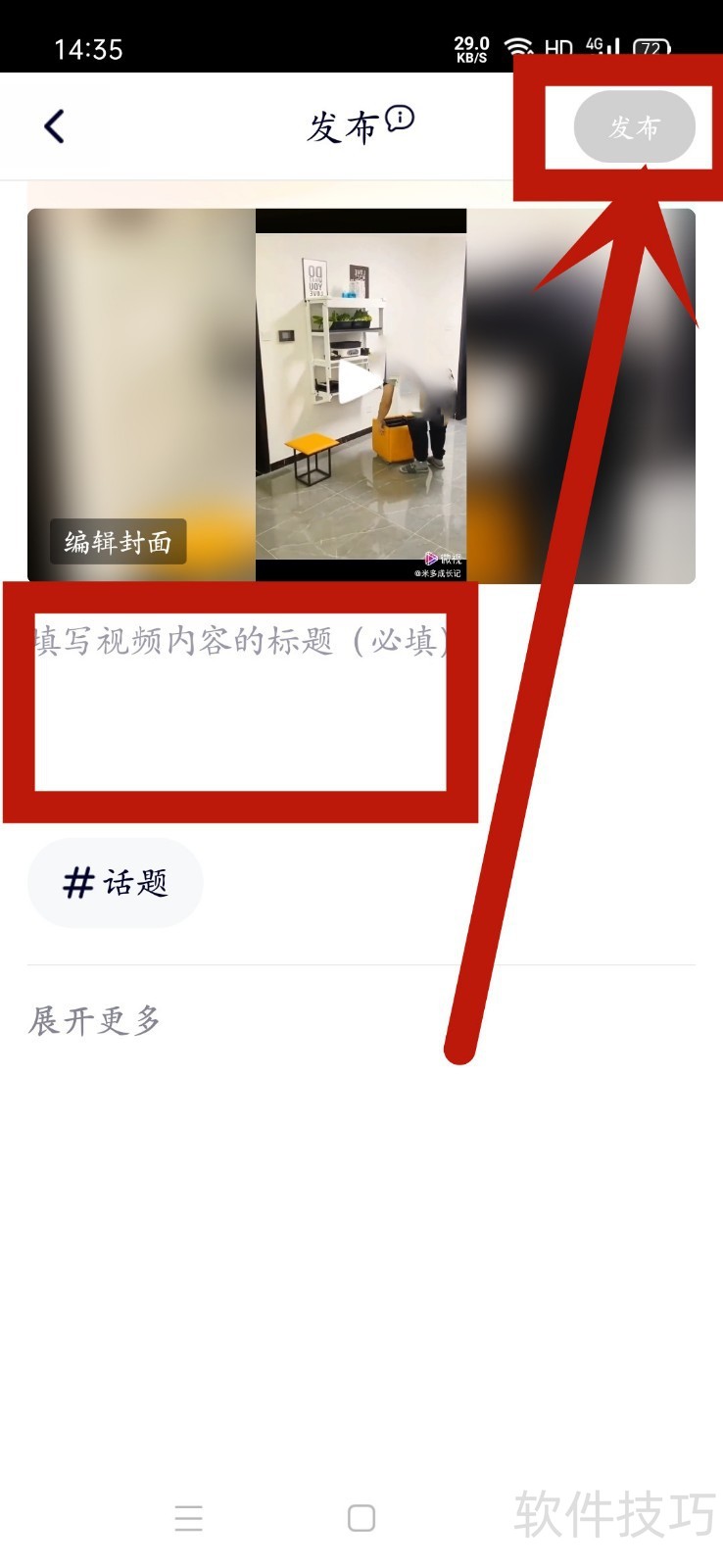 5、 编辑视频内容,点击右上角【发布】开始发布