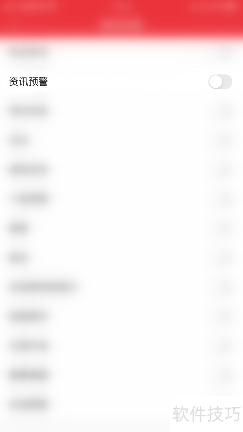 3、 消息通知设置界面点击”资讯预警“后面的圆点