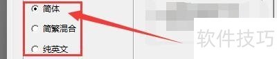 6、 在“语言”栏目中,选择需要使用的窗体显示语言,如:选中“简体”