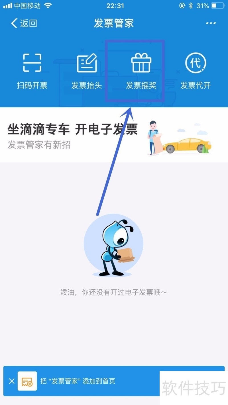 4、 然后点击发票摇奖,如下图所示。