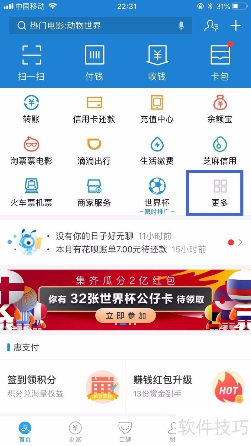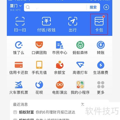 1、 进入支付宝主界面,点击卡包进入。