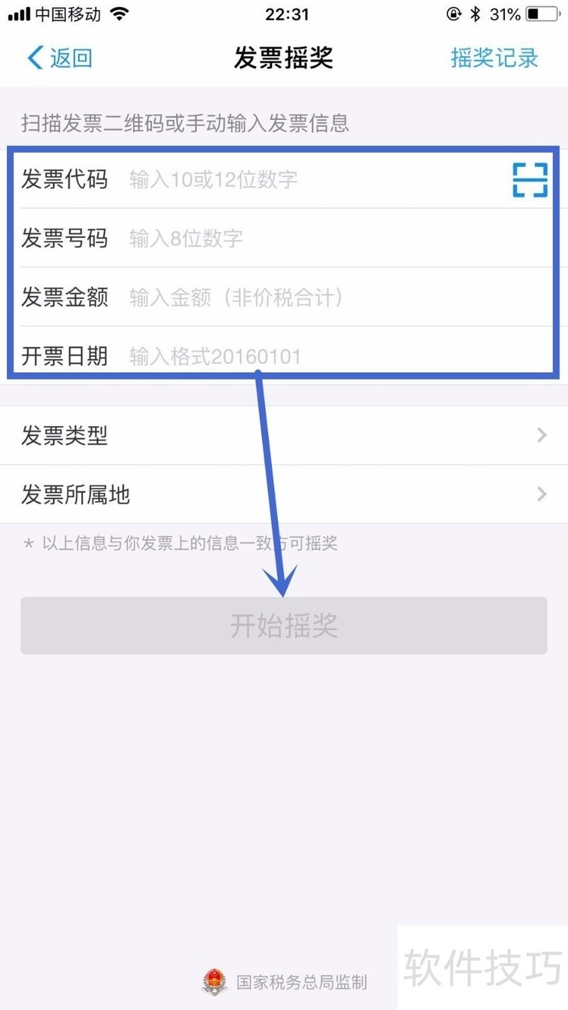 5、 最后输入发票所对应的信息,并点击开始摇奖就可以了。