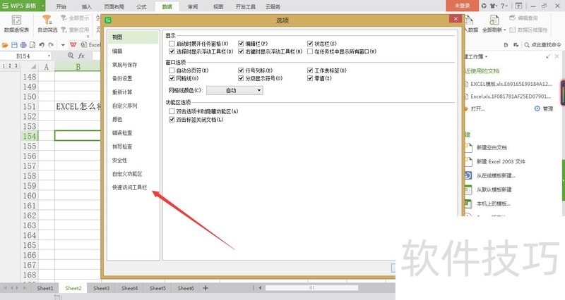 3、 在系统弹出来的“选项”对话框中,点击“快速访问工具栏”选项。