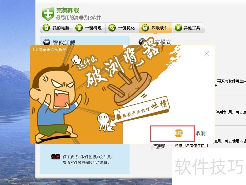 5、 然后软件调用uc浏览器自带的卸载程序,卸载uc浏览器··