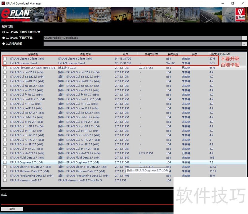 4、 安装目录(默认):C:Program FilesEPLANDownload Manager2.7.3Bin加载程序。
