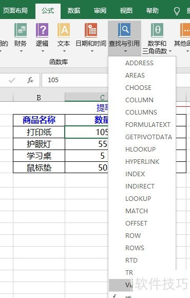 2、 鼠标点击存放数据的单元格F9再选中功能区的“公式”—“查找与引用”选择VLOOKCP函数