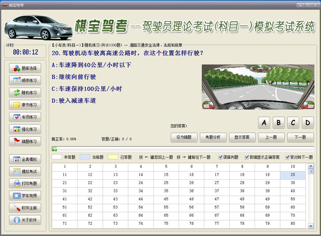 驾校科目一理论模拟考试系统是一款适用于各类机动车驾驶人员的软件。该软件采用公安部“最新题库”和“最新考试新规”,与正式考试完全相同,让用户预先了解考试情况,提高通过率。软件功能强大,支持顺序练习、随机练习、专项练习、错题练习等模式,并提供套题考试、模拟考试、历史成绩打印等服务。用户可以根据地区选择和车型选择进行答题,同时软件还提供了答案解析和收藏试题等实用功能。无论是否联网,该软件都能正常使用。