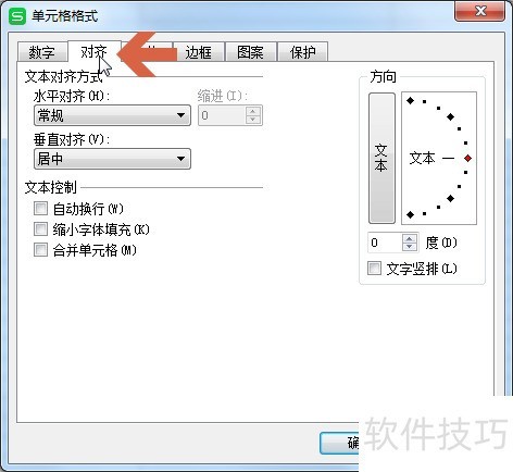 4、 点击后应打开【单元格格式】对话框的【对齐】选项卡。