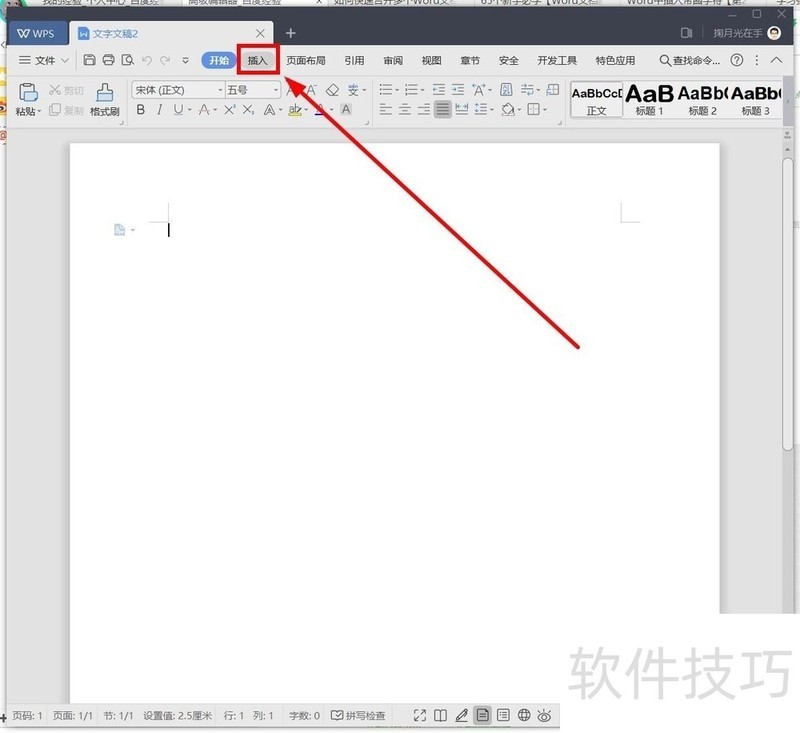 1、 打开要合并文档的目标文档(或者新建一个文档)