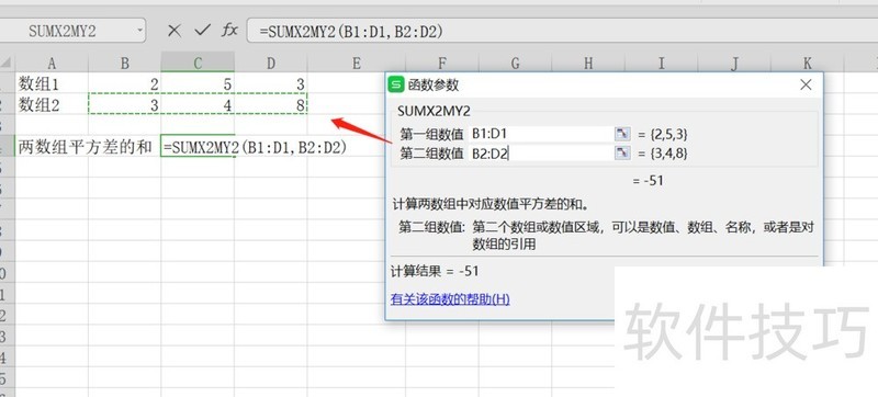 如何利用WPS快速计算两个数组的平方差之和?函数的应用极大地提升了效率,通过SUMX2MY2函数,选择相应数组即可迅速获得结果。接下来,我们将演示具体操作步骤。