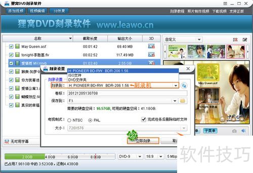 2、 ? ? 随后在弹出的刻录设置窗口中,选择为“刻录到”为刻录机,其它项可按个人需要来选择,大家可能不太懂的应该是卷标和电视制式吧。卷标也就是光盘名称,可忽略;电视制式,中国大陆的电视选择PAL,日本的电视等选NTSC。