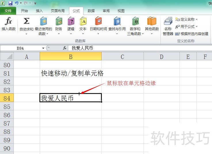 2、 快速移动单元格:按下鼠标左键并拖动到新位置,然后释放按键完成移动