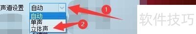 3、 然后,点击声道设置按钮,在弹出栏目中,点击“立体声”