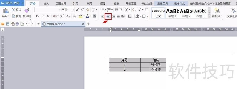 2、 第二步:选中要调整的表格,单击居中对齐按钮使文字居中对齐。