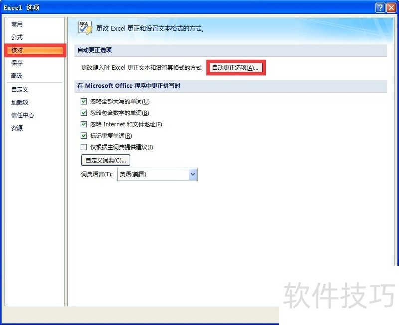 2、 打开“校对——自动更正选项”