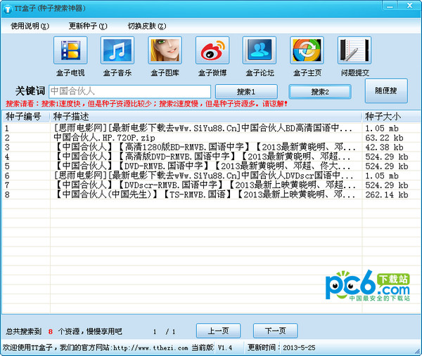 官方软件分类:资源搜索大小:2.66 MB时间:2026-11-13软件介绍:精简的功能布局,快捷的操作步骤,想体验瞬间秒杀全网影视资源,请您毫不犹豫的选择搜影大师。 立即下载TT盒子种子搜索神器 2.79