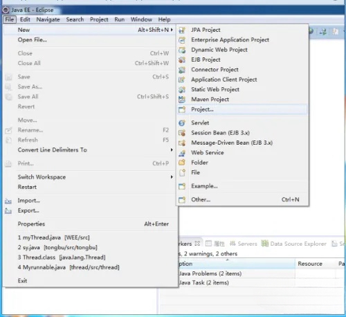 1、打开Eclipse,点击菜单栏的 File,选择 New -> Project,在弹出窗口中选择 Java -> Java Project。