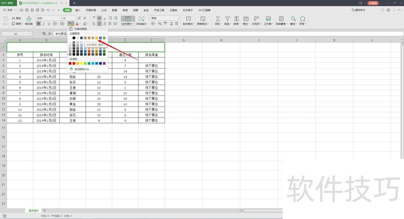 2、 点击“开始”下的样色填充,即可为表格填充背景颜色。