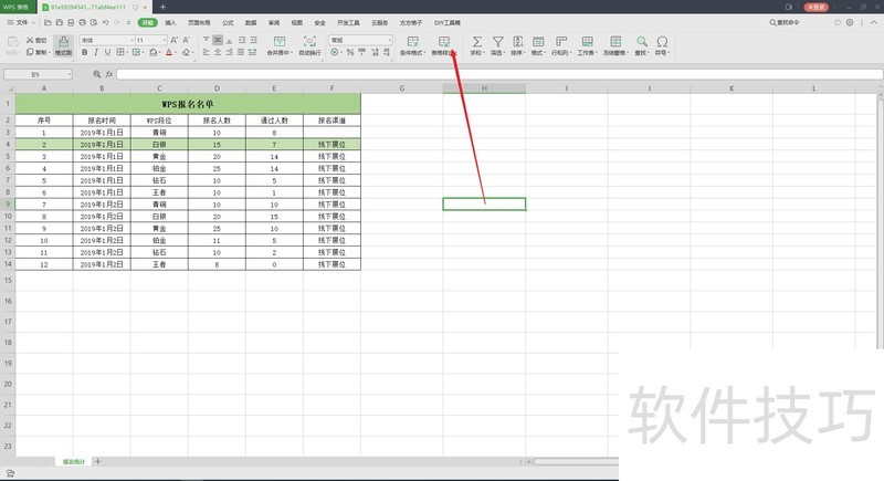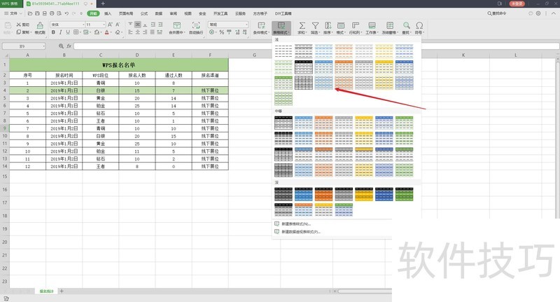 2、 在表格样式中选择适合的样式,也可新建表格样式设置。