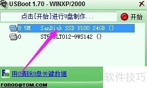 3、 解压完成后打开解压的usboot.4打开以后在左下角,选择用0清除u盘关键数据。