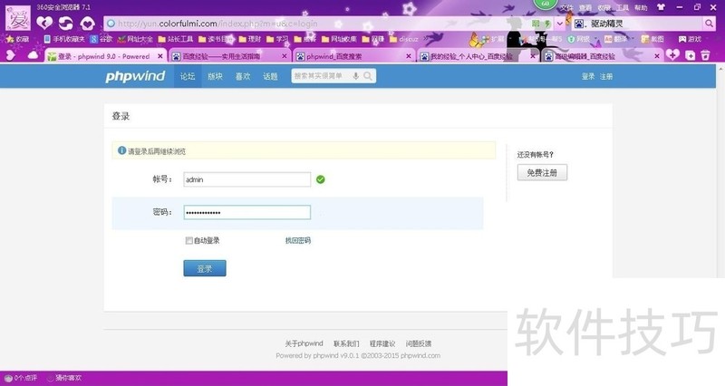 1、 安装好phpwind之后,我们登陆进phpwind。