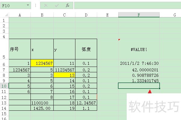 2、 在编辑区中输入表格数据,选择一个空白单元格(比如:F10单元格)。
