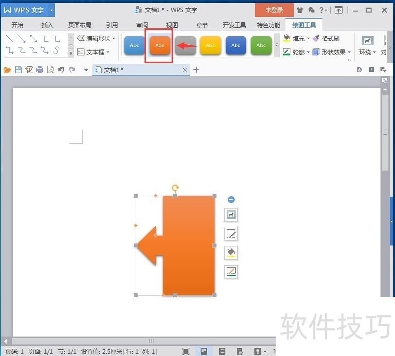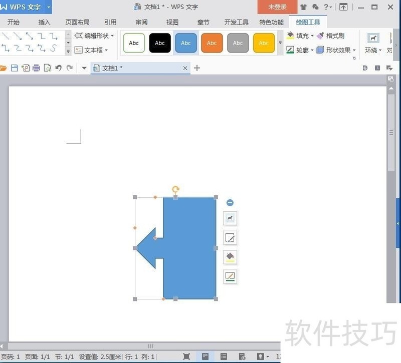 5、 鼠标变成十字形,我们在wps空白页面拖动鼠标,画出一个左箭头标注;
