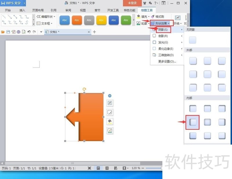 7、 点击形状效果,选择阴影,添加一种阴影效果;