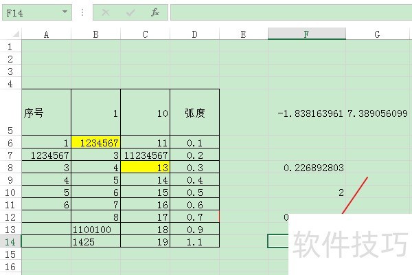 2、 在编辑区中输入表格数据,选择一个空白单元格(比如:F14单元格)。