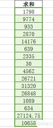 4、 点击后,最后求和数字自动生成。