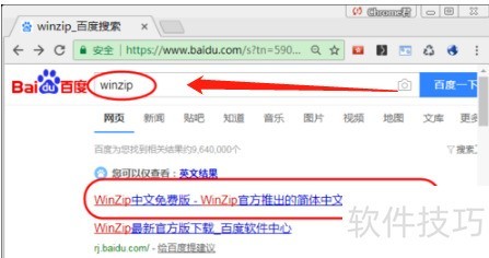 1、 在网络搜索中输入WinZip进行搜索,打开搜索结果的第一条,进入WinZip中国官方网站。