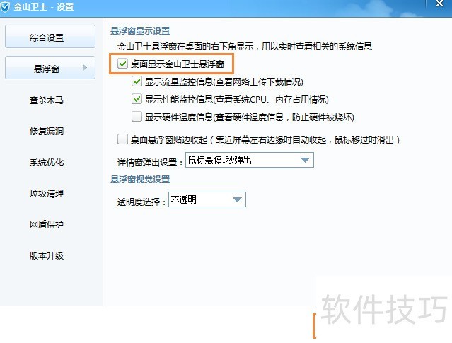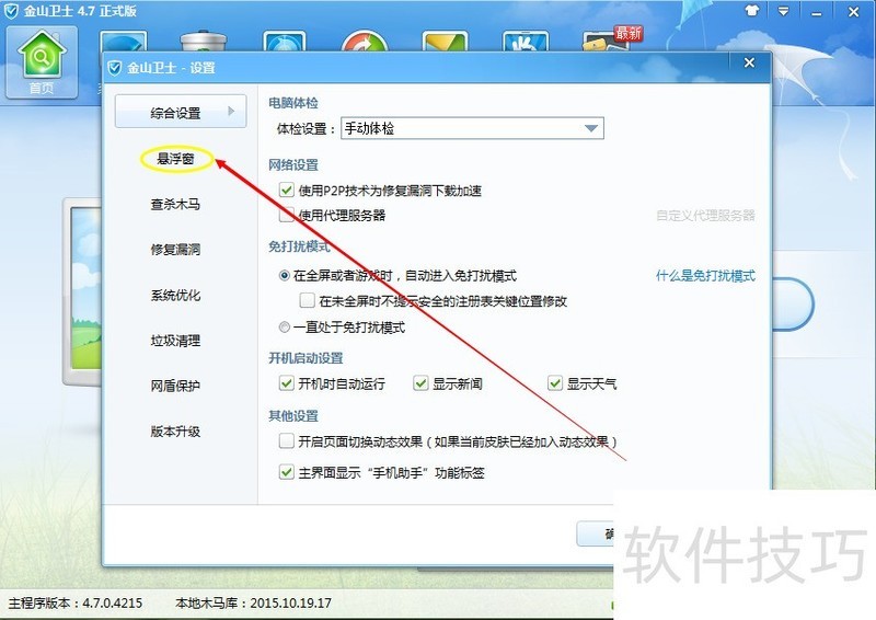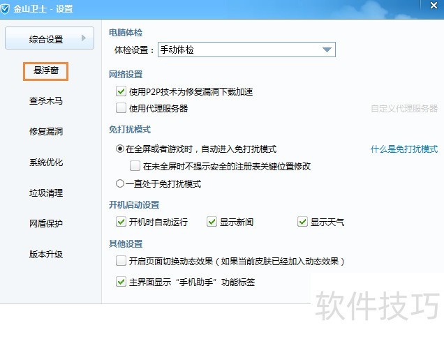 金山卫士设置去掉悬浮窗