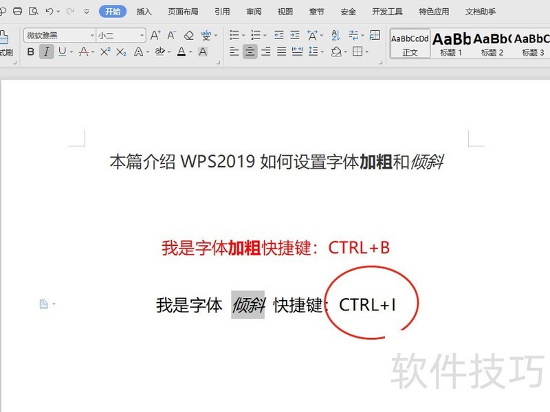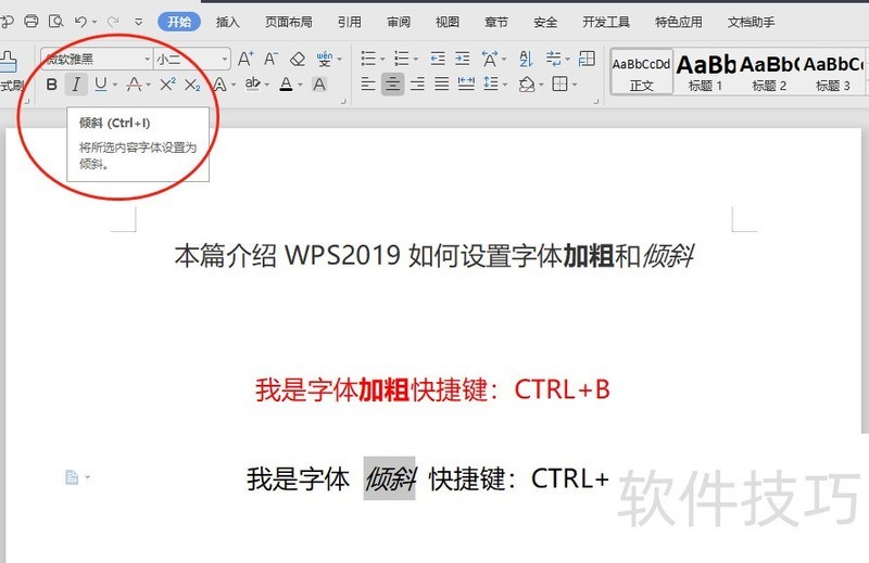 5、 设置倾斜方式2:选中文本,点击上方工具栏快捷按钮“I”,即可对选中的文本设置为倾斜格式。