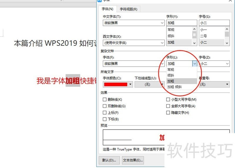 3、 设置加粗方式3:选中文本,点击鼠标右键,在弹出的字体对话框上,选择字体下拉菜单,点击加粗,点击确认,即可对选中的文本设置为加粗格式。